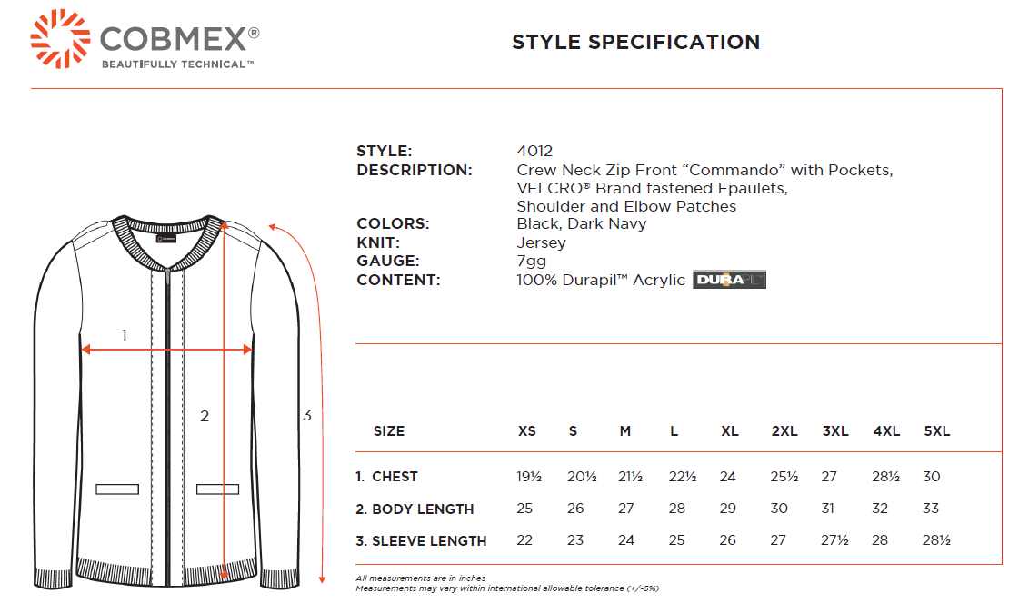 The Cobmex Unisex Crew Neck Zip Front "Commando" with VELCRO Epaulets, Shoulder & Elbow Patches is designed for durability and versatility, crafted from 100% Durapil™ Acrylic for long-lasting performance. Its practical zip front allows for easy layering, while convenient pockets and a ribbed waistband provide comfort and functionality. Reinforced with VELCRO epaulets, shoulder, and elbow patches, this sweater is built for demanding environments. A trusted choice for dispatchers, EMTs, and public transit workers, it delivers reliability and professional style.