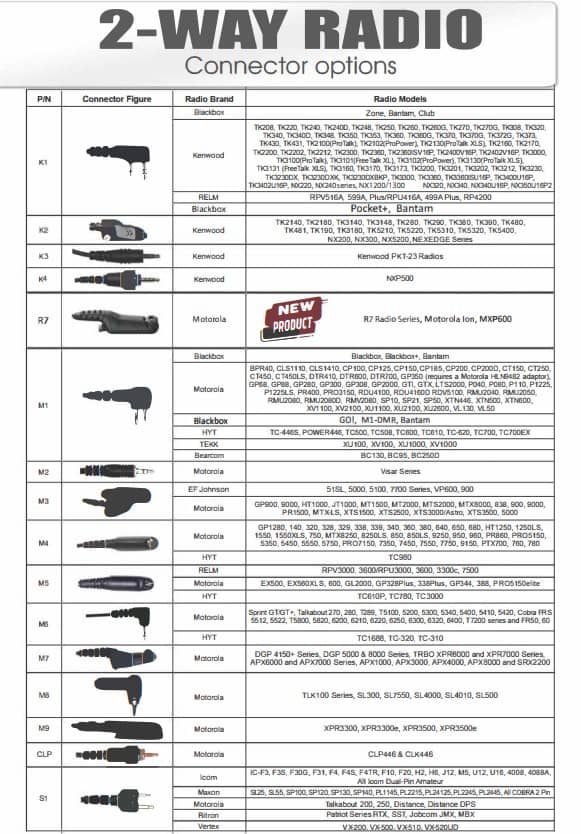• In-line PTT button w/ built-in microphone